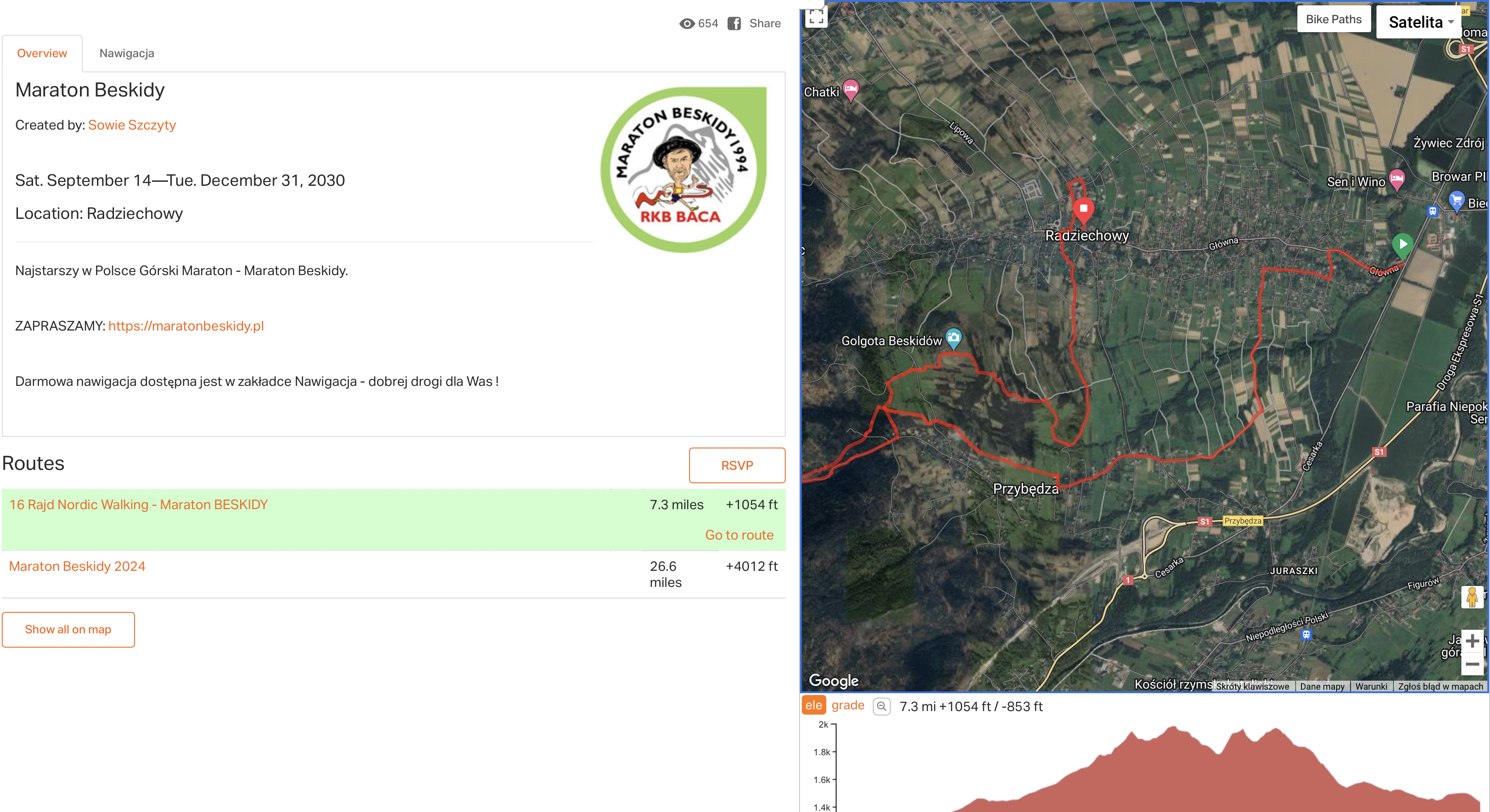 Pełna trasa Maratonu Beskidy, wraz z opisem przewyższeń, dostępna jest pod poniższym linkiem: https://ridewithgps.com/events/333140-maraton-beskidy Tegoroczna trasa prowadzi przez malownicze beskidzkie szlaki, oferując uczestnikom nie tylko niezapomniane widoki, ale także solidne sportowe wyzwanie. Zawodnicy zmierzą się z licznymi przewyższeniami, które dodają trudności i ekscytacji całemu biegowi. Zapraszamy…
